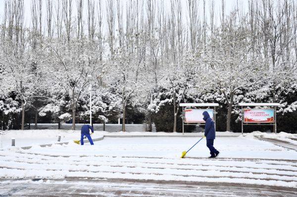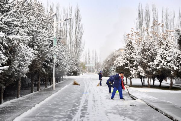 雪后清晨,為了職工安全,方便出行。公司干部職工紛紛拿著鏟雪鐵鍬、掃帚等工具開始清理路面積雪。大家不懼嚴寒、互相協作,井然有序的清掃著道路積雪。轉眼間,往日干凈整潔的馬路又恢復了原貌。