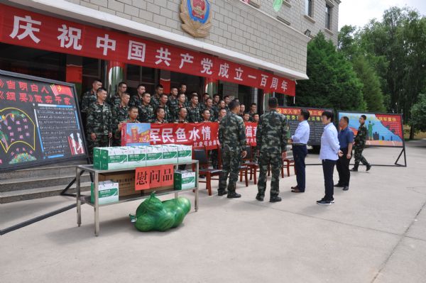 在中國共產黨成立100周年之際,為加強軍民融合工作。6月30日,普安公司慰問了武警武威支隊執勤一大隊二中隊,向他們致以節日的問候,并送去慰問品,表達了普安公司與駐地官兵軍民一家親的濃濃魚水情。