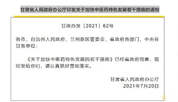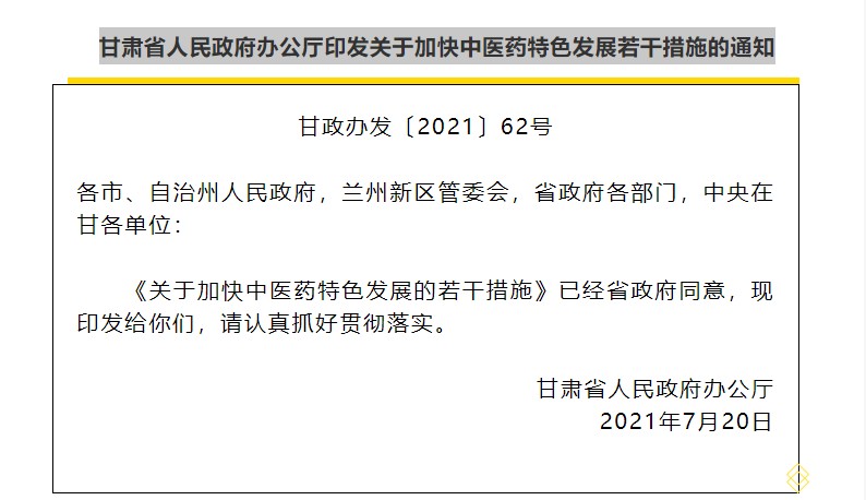 (四)提高中醫藥法治化水平。加強中藥監管隊伍建設,提升中藥審評和監管現代化水平。將中醫健康服務機構和人員誠信經營情況納入不良執業記錄檔案,并將相關企業行政許可、行政處罰等信息通過“信用中國”網站、國家企業信用信息公示系統(甘肅)依法公示。(省衛生健康委、省司法廳、省市場監管局、省藥監局負責)