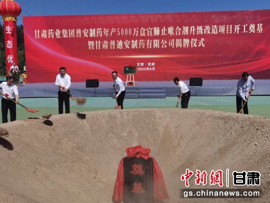 6月15日,在武威市涼州區舉行了甘肅藥業集團普安制藥年產5000萬盒(3億支)宣肺止嗽合劑升級改造項目開工奠基暨甘肅普迪安制藥有限公司成立揭牌儀式。