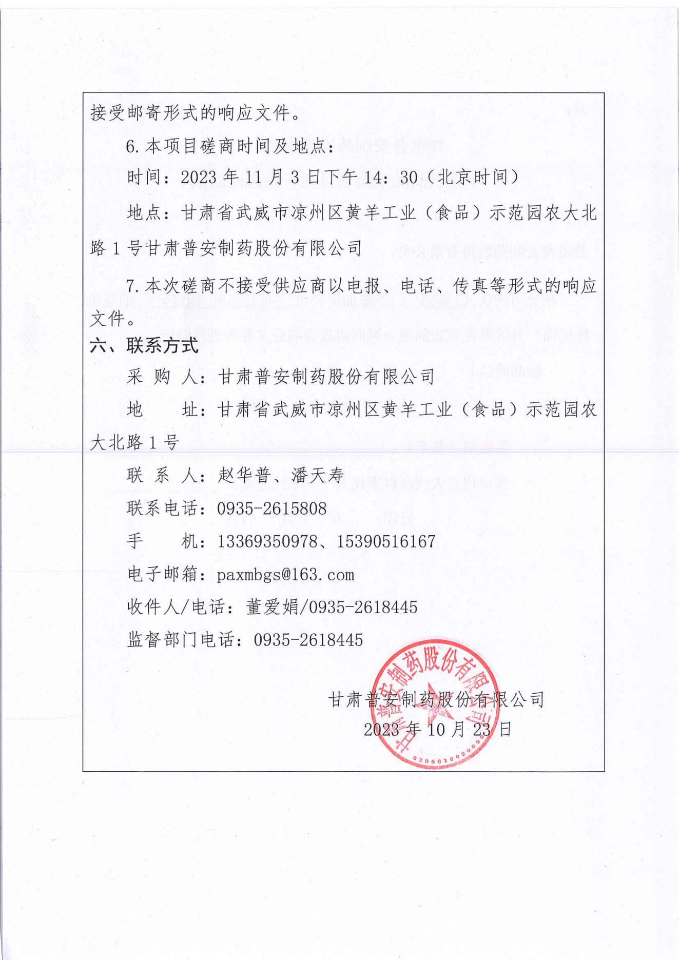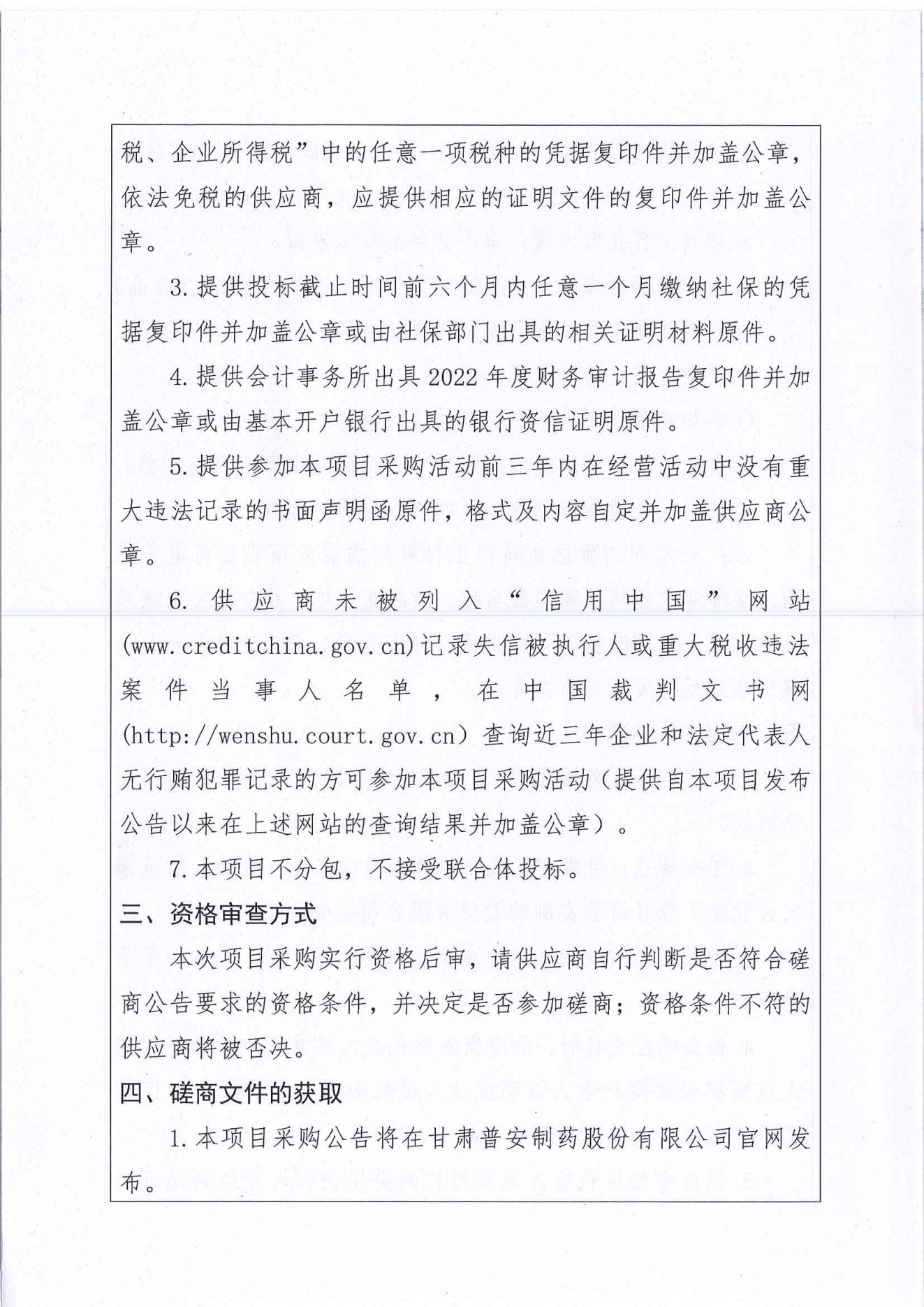 甘肅普安制藥股份有限公司年產5000萬盒(3億支)宣肺止嗽合劑等液體制劑生產線升級改造項目不銹鋼制品采購競爭性磋商公告