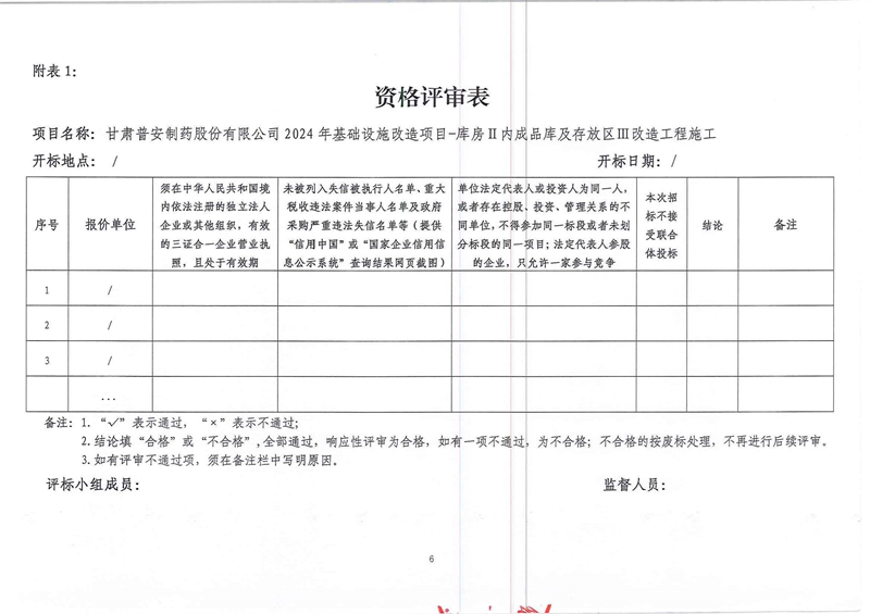 甘肅普安制藥股份有限公司2024年基礎(chǔ)設(shè)施改造項目-庫房Ⅱ內(nèi)成品庫及存放區(qū)Ⅲ改造工程施工招標(biāo)公告