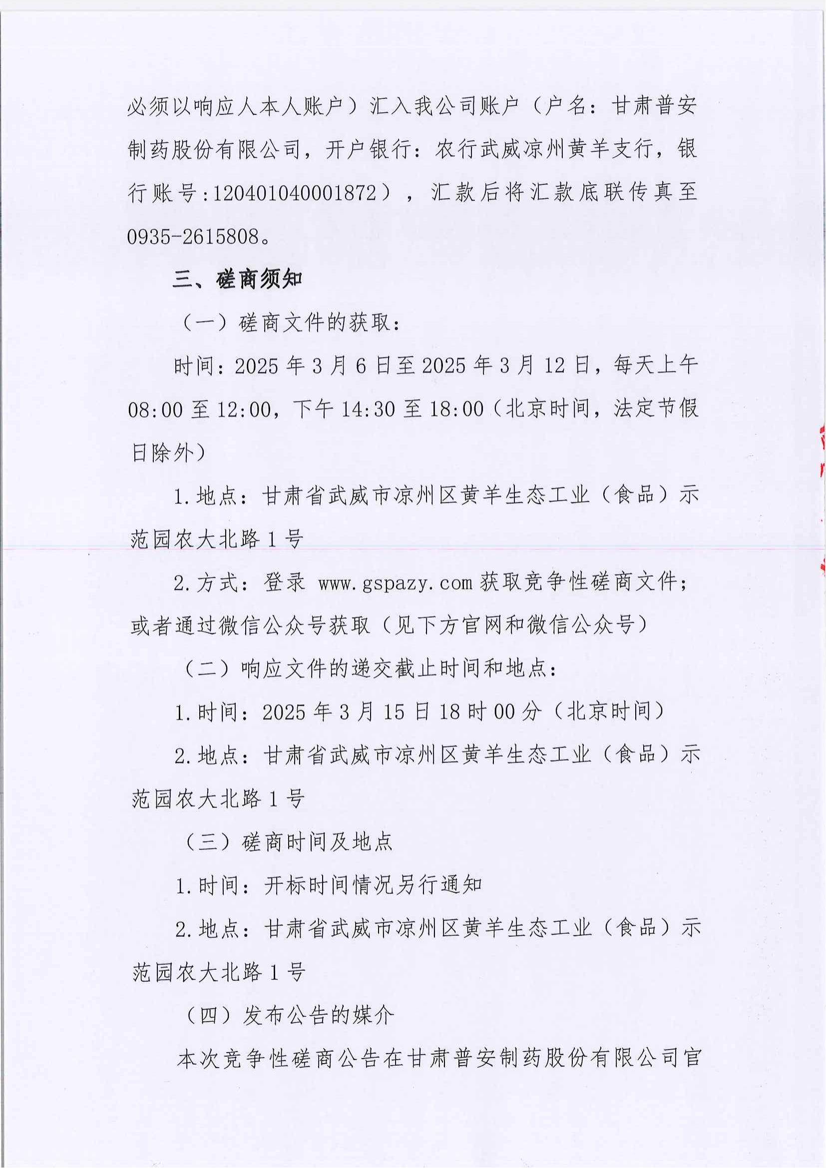 甘肅普安制藥股份有限公司裝卸服務單位招標公告